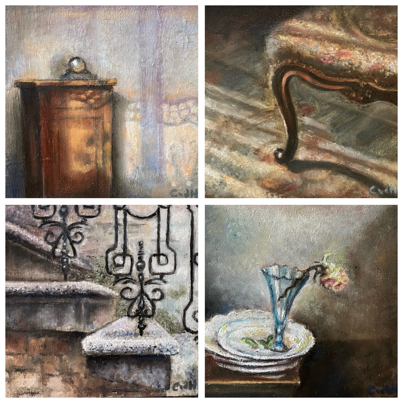 My paintings, I think, speak for themselves. It is clear that I am very fond of classical architecture and design, and the beauty and mysticism that emanates from them. When you see the work together like this, what strikes you most is its constantly changing tone. While painting, I don't really give it much thought myself, but my portfolio contains paintings for every temperament...